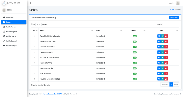 - Master Fasilitas Kesehatan (digunakan untuk mengatur data faskes)