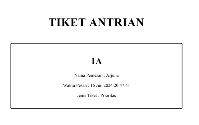 A : Apakah aplikasi ini terdapat fitur cetak antrian?