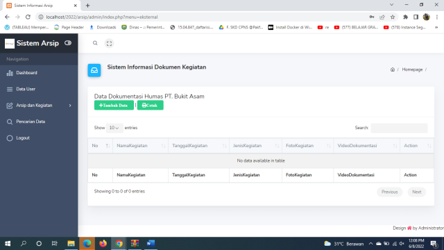 Aplikasi yang dibangun untuk mendata arsip seperti surat masuk dan keluar serta data dokumentasi kegiatan yang berhubungan dengan kegiatan Humas
