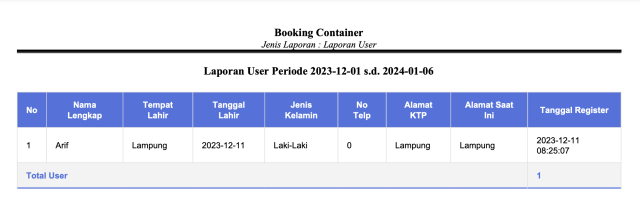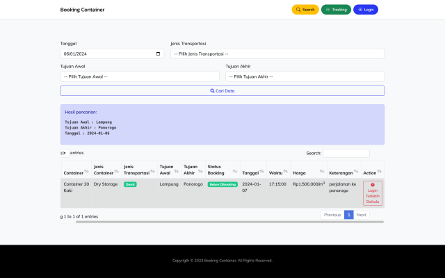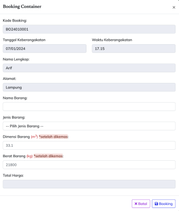 - Booking container (Login dulu)