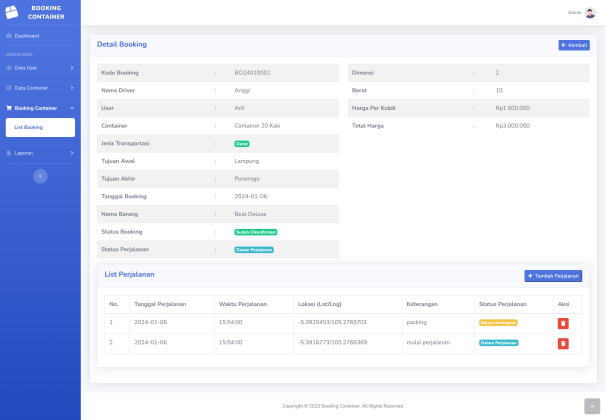 - Detail Booking, Data Perjalanan (Tracking)