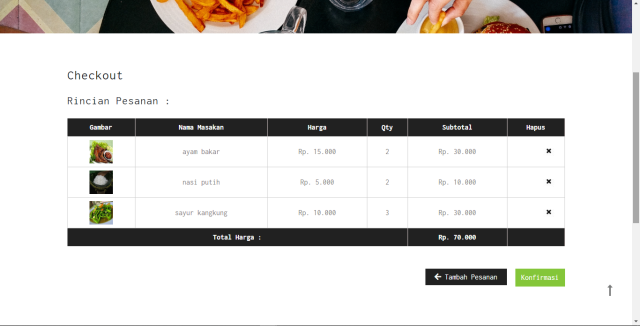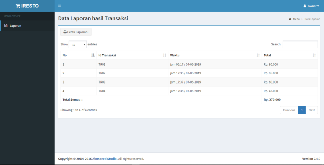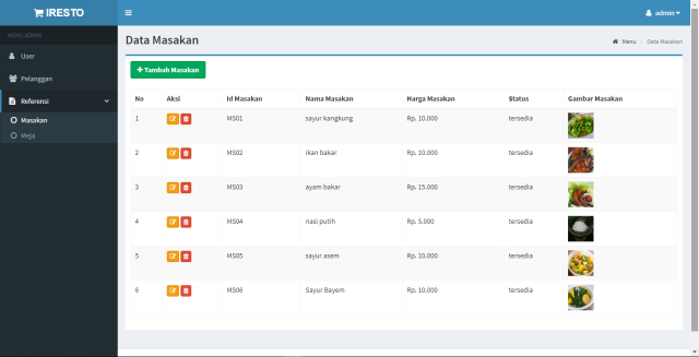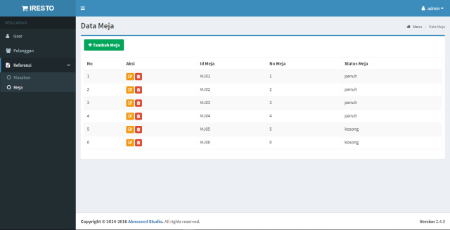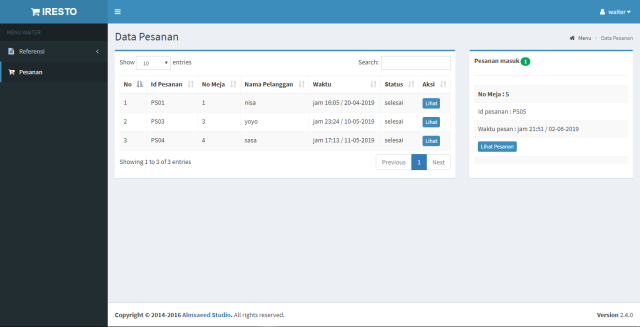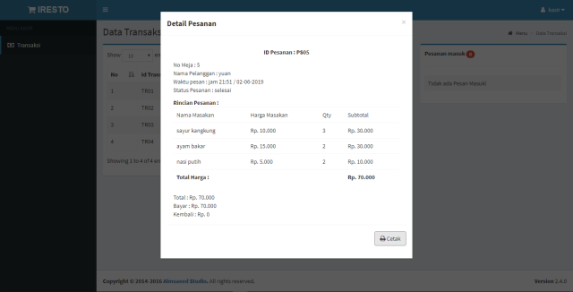 dengan username : admin, waiter, kas...