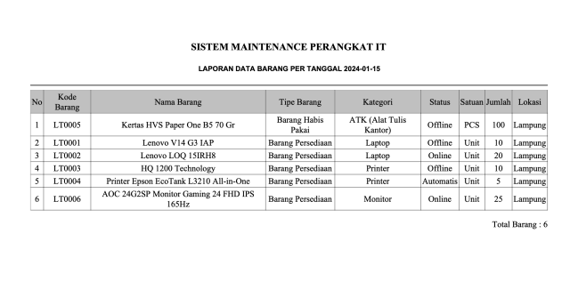 - Data Perbaikan Barang (digunakan untuk memanage perbaikan barang)