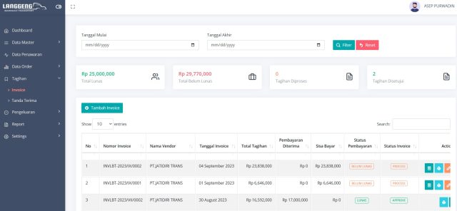 - Tampilkan ringkasan total: lunas, belum lunas, diproses, dan disetujui