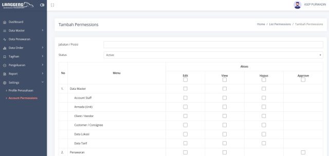 - Kelola akses akun seperti admin, staff, dan role lainnya