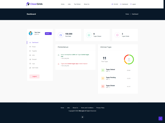 - Dashboard dengan monitoring tugas dan notif.