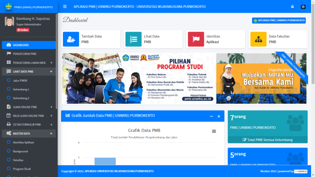 1. Dashboard (Data Umum, Grafik Jumlah Pendaftar Dsb)