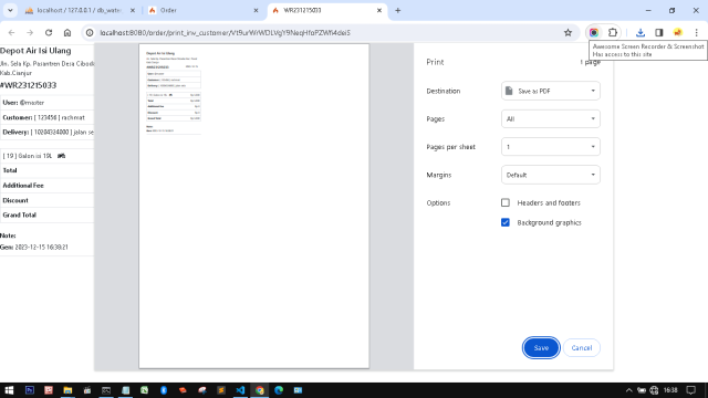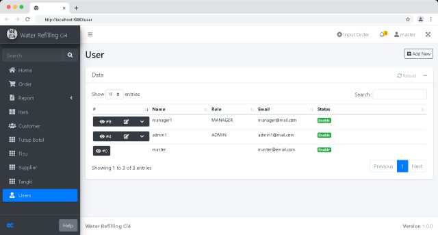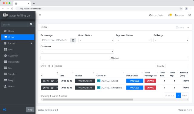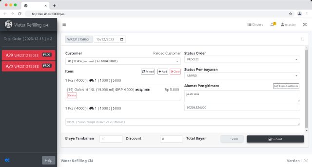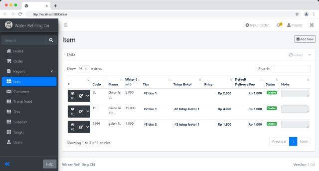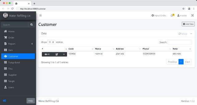Merupakan aplikasi berbasis web dengan fungsi utama mencatat/menyimpan data transaksi penjualan Depot Air Isi ulang.