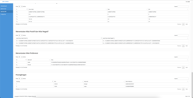 - Hasil Perhitungan SPK TOPSIS