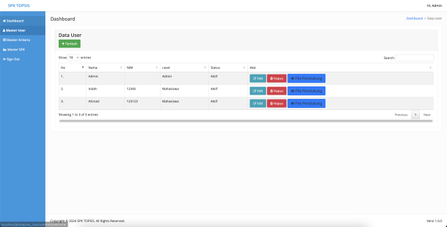 - Master SPK (Menampilkan Data SPK, Menampilkan Data Hasil SPK) - SPK (Sistem Pendukung Keputusan)
