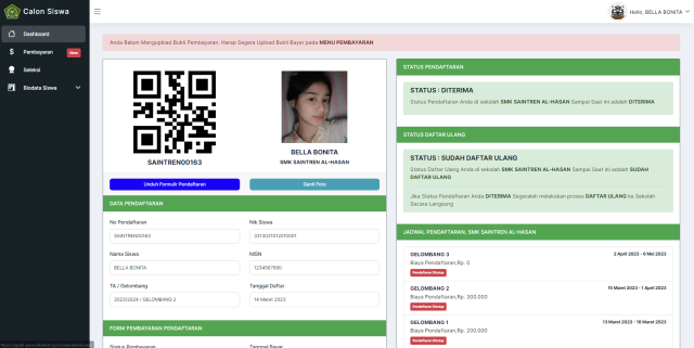 - Monitoring keuangan setelah daftar ulang (BAYAR SERAGAM, dll)