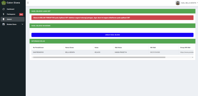 - Ada menu seleksi siswa untuk menyeleksi siswa yang dapat diatur (Wawancara, Tes BTQ, dll)