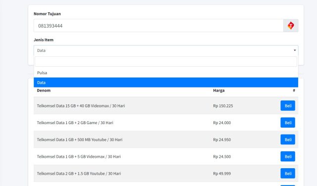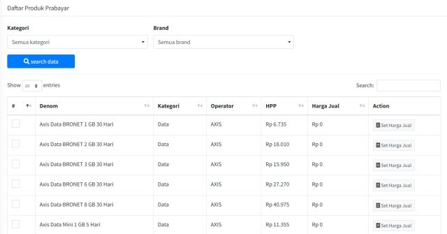 - Master Produk ( Prabayar dan Pascabayar )
