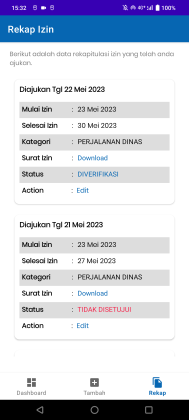 - Approval izin yang diajukan oleh pegawai