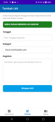 - pencatatan LKH (Logbook) harian pegawai
