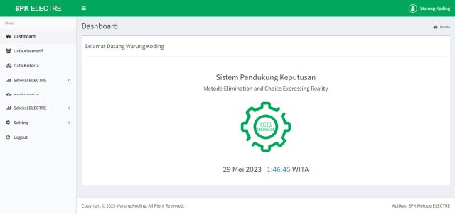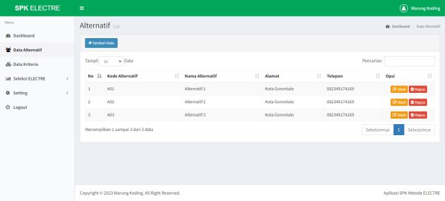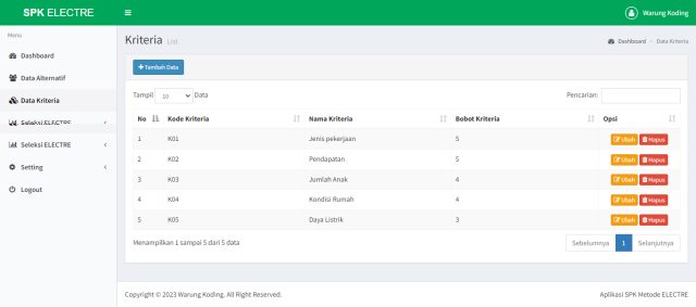 Terdapat beberapa fitur yang ada pada aplikasi spk metode electre ini :