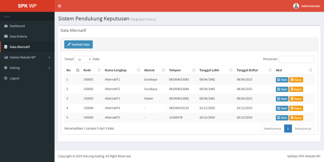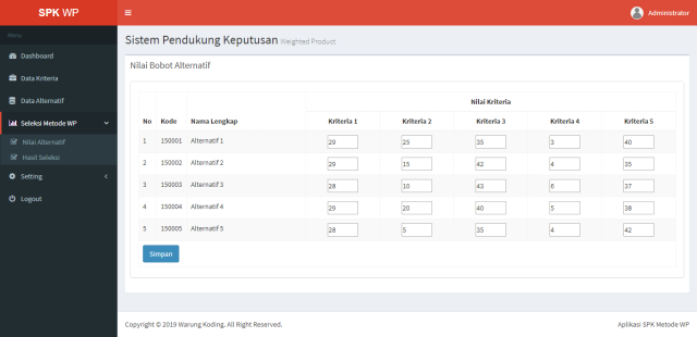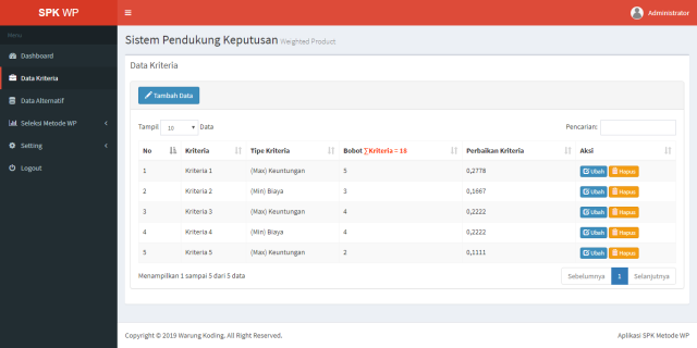 Pada aplikasi ini bisa mengambil contoh kasus sendiri sesuai dengan kebutuhan dengan kriteria yang dapat disesuaikan dengan kebutuhan (dapat ditambah atau diubah sendiri).