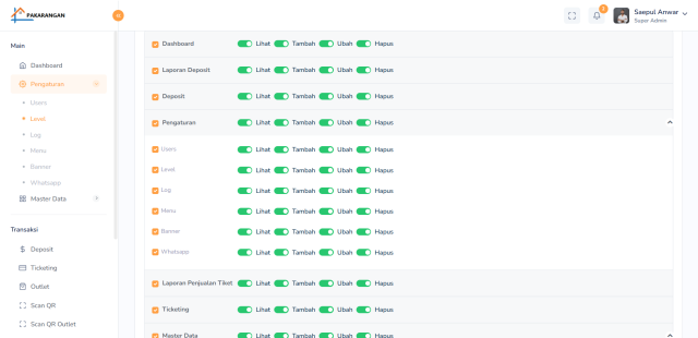 - Scan QR untuk validasi ticket masuk (dapat menunjukkan QR yang ada diaplikasi mobile).
