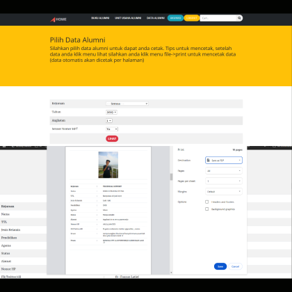 Buku kenangan alumni digital memudahkan anda untuk membuat database alumni, dan dapat dengan mudah untuk membuat buku kenangan secara fisik selain data alumni tetap aman berada di cloud