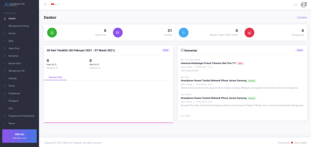 CMS Memo yang dikembangkan oleh saya sendiri dengan beberapa fitur yang Anda butuhkan, dengan teknologi web terkini yang berbasis PHP. CMS ini tentunya menawarkan tampilan yang responsive yang dapat menyesuaikan lebar layar perangkat pengguna.