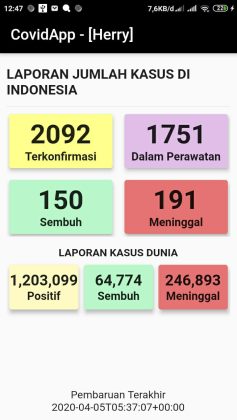 mengetahui data PDP, ODP, penderita covid 19. aplikasi ini menggunakan flutter / dart jadi hybrid mobile