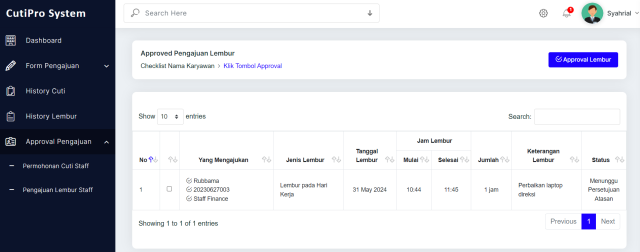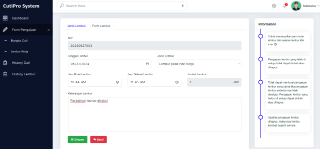 • Pengajuan lembur online