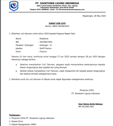 Proses persetujuan sesuai alur struktural organisasi, menjadikan proses kerja lebih tertib dan efisien.