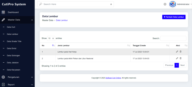 A: CutiPro 2.0 adalah aplikasi manajemen cuti dan lembur karyawan yang membantu perusahaan dalam mengelola pengajuan, persetujuan, dan pelacakan cuti serta lembur secara online dan real-time.