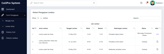 • Riwayat lembur