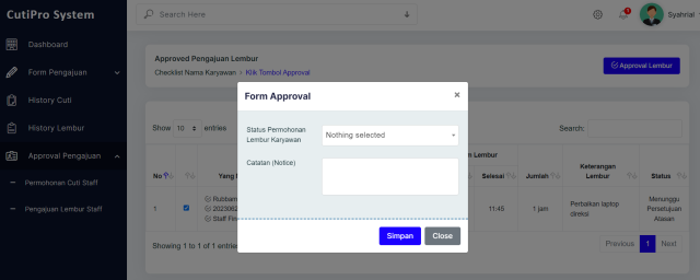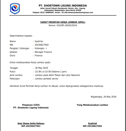 • Persetujuan lembur berjenjang