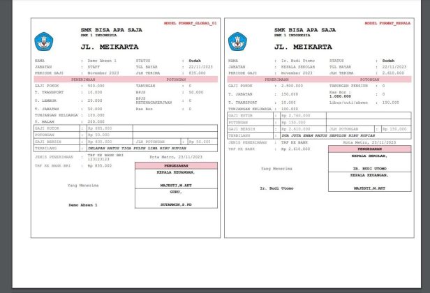 • Master data : Data Sekolah, Devisi, Jabatan, format gaji, jenis gaji, kategori gaji, pengaturan bonus, SOP, periode gaji