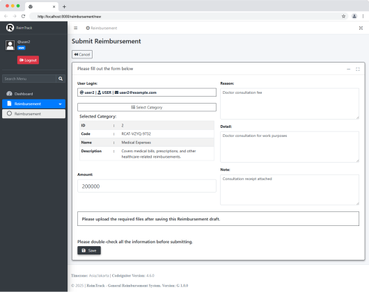 ReimTrack – General Reimbursement System adalah sistem reimbursement berbasis web yang dirancang untuk membantu perusahaan, organisasi, atau institusi dalam mengelola proses pengajuan, verifikasi, dan pencairan reimbursement.