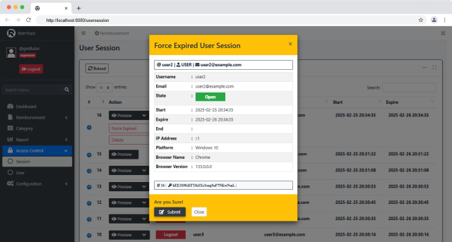 - User Session ( dapat memaksa user yang sedang login menjadi logout )