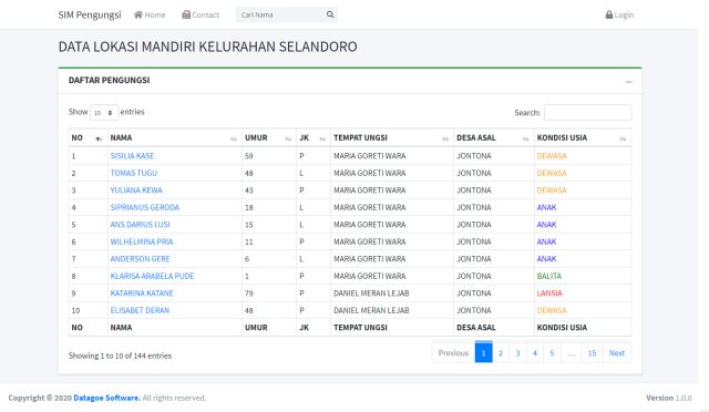 Aplikasi yang berfungsi untuk mengetahui penyebaran pengungsi, mengetahui jumlah pengungsi di suatu tempat pengungsian.