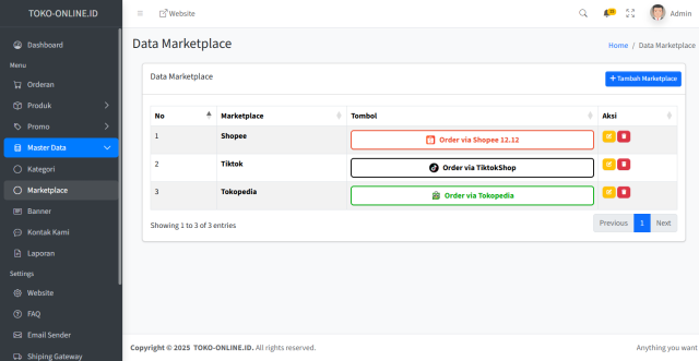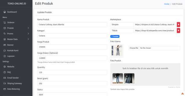 Integrasi tombol langsung ke Shopee, TikTok Shop, Tokopedia, dan marketplace lainnya — memudahkan pengunjung membeli produk langsung dari iklan.