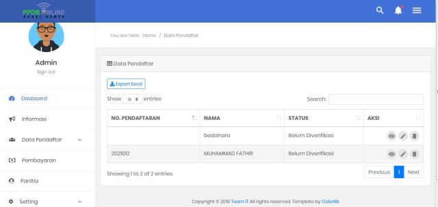 aplikasi ppdb ini bisa multi fungsi untuk pendaftaran perserta dididk maupun untuk daftar ulang.