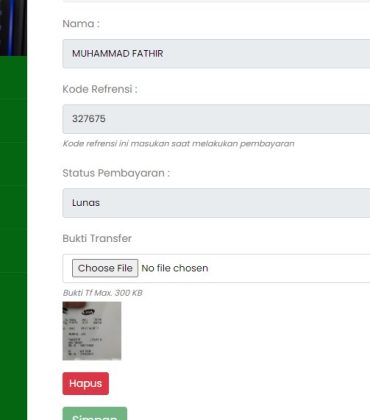 tingal tambahkan jurusan,kelas jalur pendaftaran. degan fungsi upload bukti tranfer pembayaran