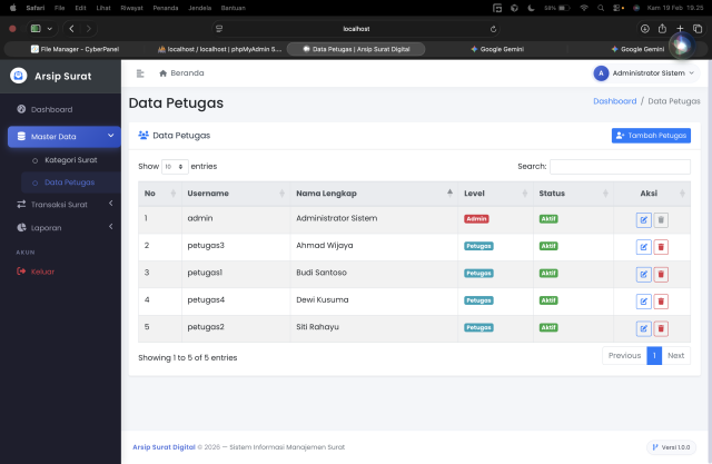 Multi-Role User (Login): Sistem hak akses terpisah (Misal: Administrator dan Petugas/Staff).