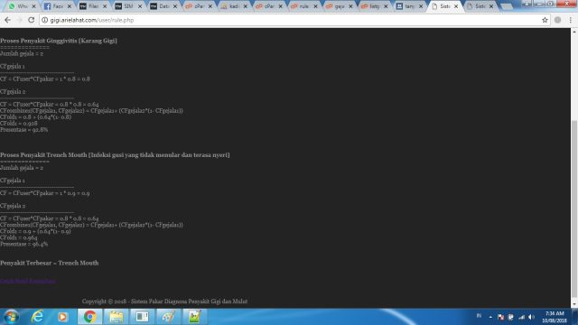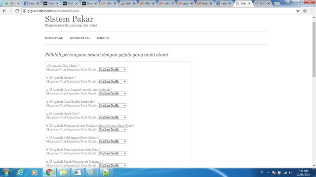 Sistem Pakar metode forward chaining di lengkapi dengan hitungan metode certainly factor