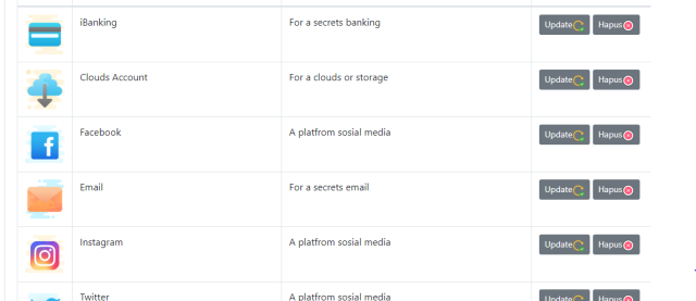 Sistem Aplikasi Data ini digunakan untuk memudahkan anda untuk mengingat hal hal yang penting yang bersifat Privacy. Aplikasi ini memiliki tampilan yang interaktif dan modern dengan fitur yang cukup baik, ya meskipun ada beberapa yang perlu ditingkatkan lagi supaya menjadi sistem yang sesuai dengan kebutuhan pasar.