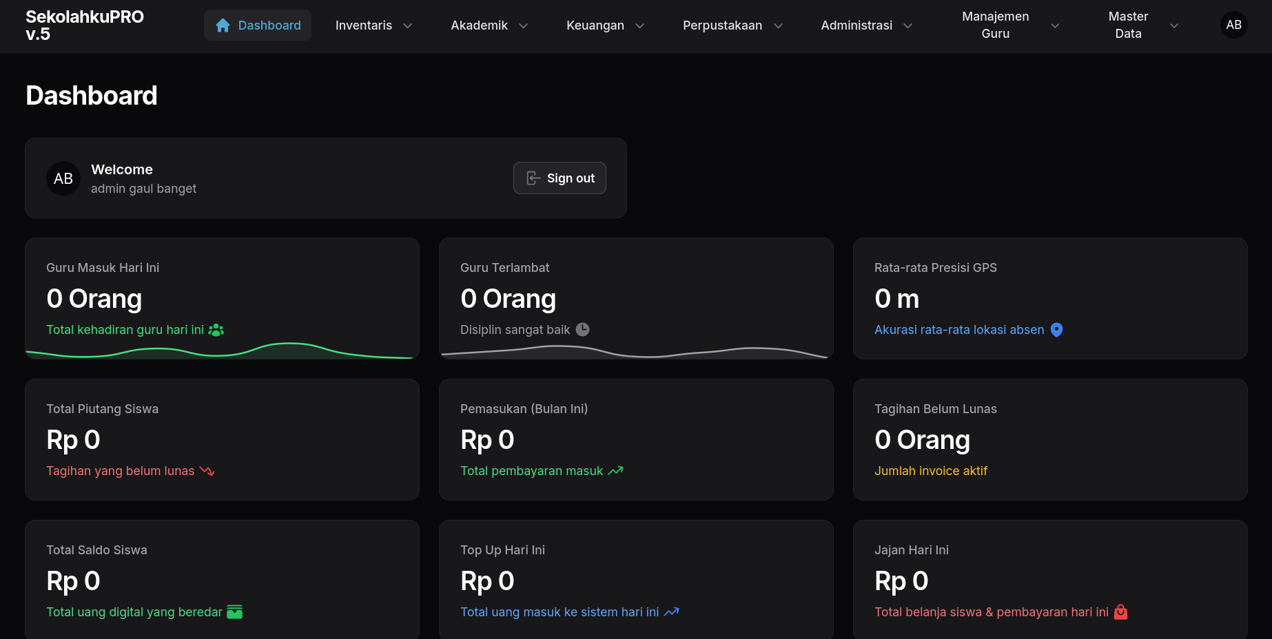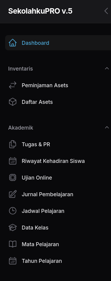 SekolahkuPro v.5 adalah platform manajemen sekolah all-in-one yang mendigitalisasi seluruh ekosistem pendidikan. Dari pendaftaran siswa baru, ruang kelas, kantor bendahara, hingga kantin, semuanya terintegrasi sempurna dalam satu sistem yang tangguh.