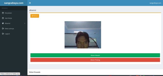 Jadi intinya aplikasi absensi ini sudah support webcam, kemudian ada pilihan button untuk absen masuk atau absen keluar.. serta laporan2 nya..