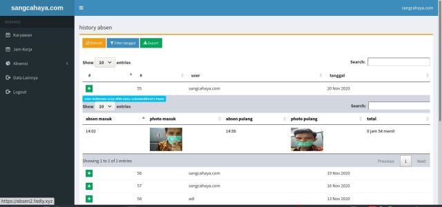 bedanya yaitu kalo admin dapat melihat semua absensi karyawan, sementara user hanya dapat melihat history absensi nya sendiri saja..