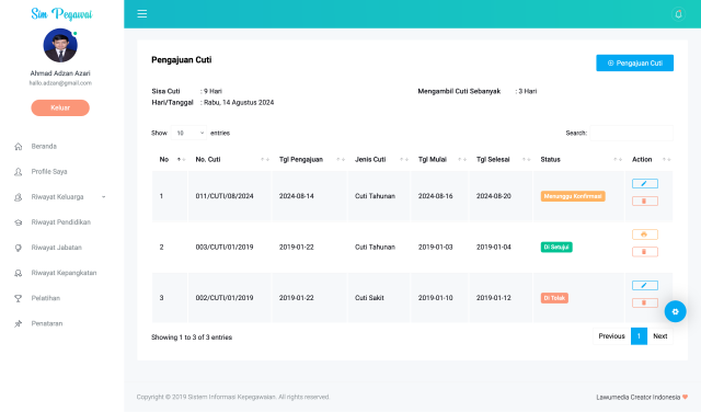 Commented On 20 Jul 2020 21:27:10 waktu mencoba demo pada level pegawai sy coba menambah cuti tidak bisa...apa gk work ya om?terus unt...