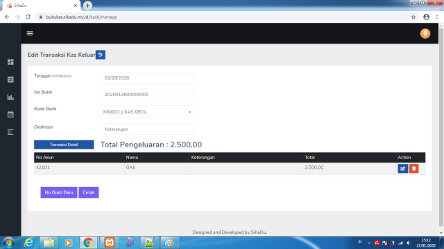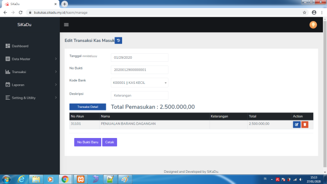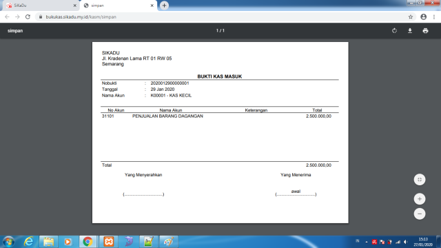 1. Transaksi Kas Masuk dan Kas Keluar per PERIODE