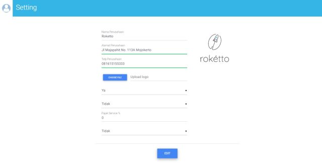 6. Manajemen Setting (Nama Perusahaan, Telp, Alamat, setting pajak, logo perusahaan, dll)