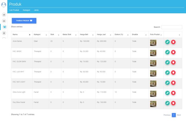 Sistem Informasi Penjualan Klinik Kecantikan Skincare PHP MYSQL