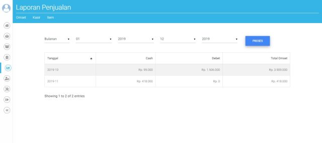 4. Laporan (Harian/Bulanan), Laporan tiap Kasir, Laporan tiap item