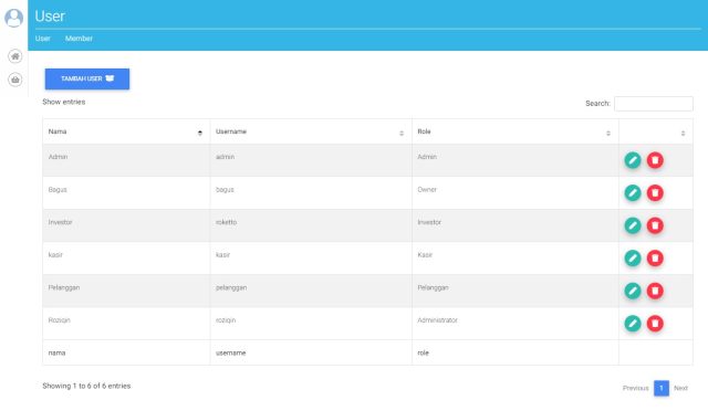 5. Manajemen User Account (Administrator, Admin, Owner, Kasir, Pelanggan, dan Investor)