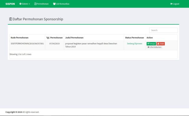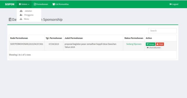 Aplikasi SISPON ( Sistem Informasi Permohonan Sponsorship ) untuk komunitas kepada perusahaan.